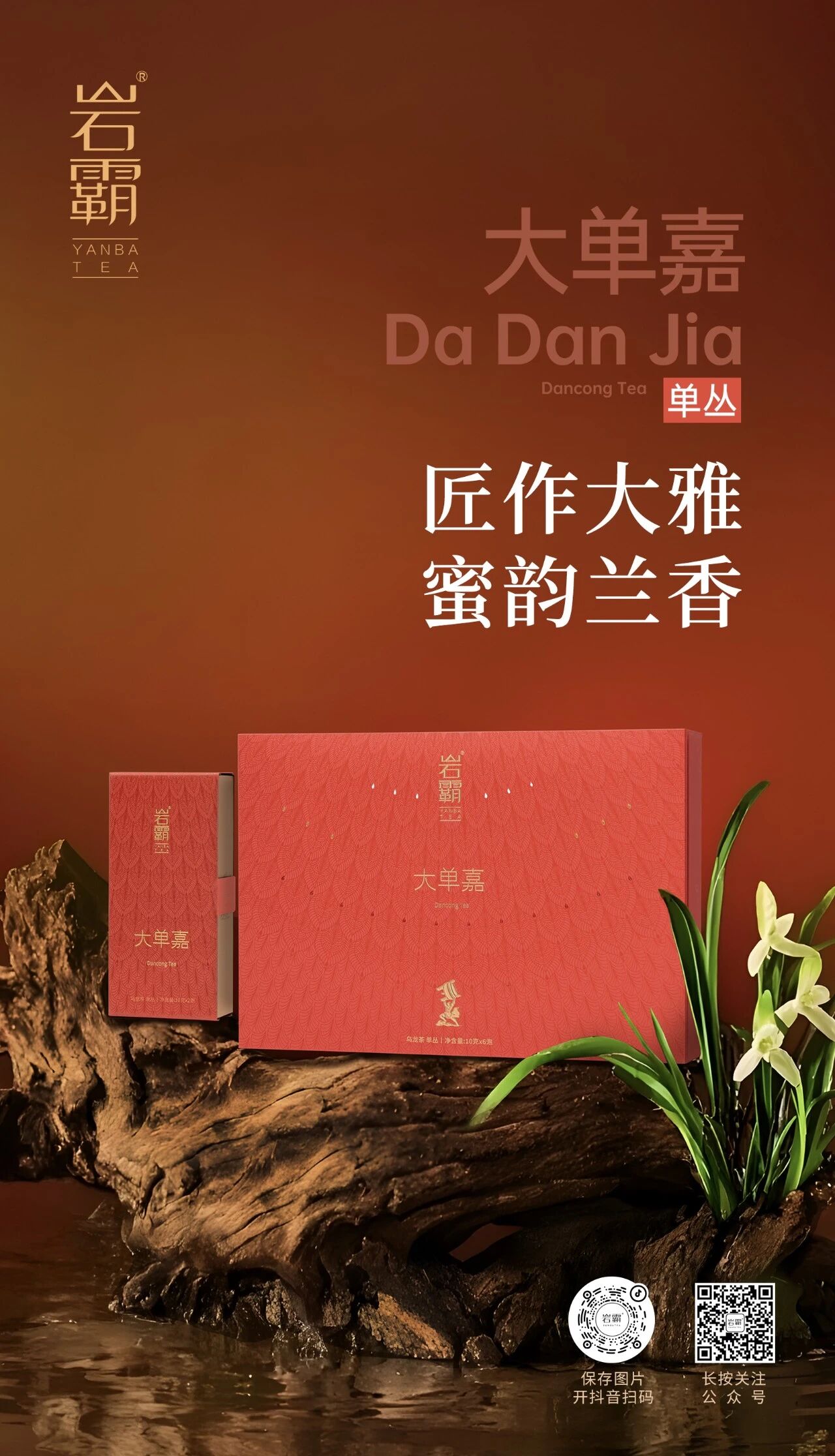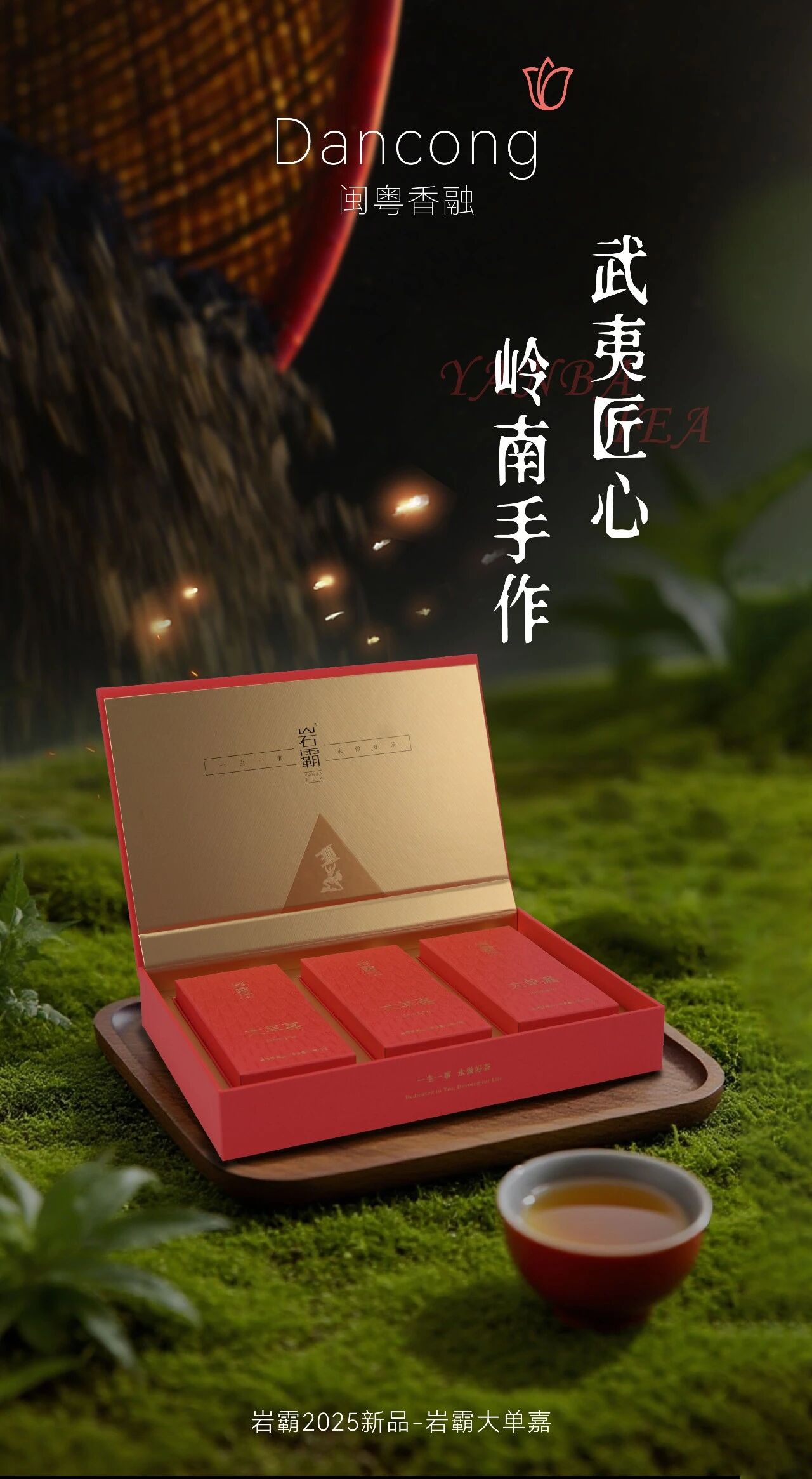 【岩霸大单嘉】古树单丛,经潮州茶师的传统初制,再遇武夷焙师的炭火洗礼,创新性地融合岭南单丛与闽北岩茶两大乌龙茶产区的工艺精髓,既保留了单丛茶高香的特点,又赋予了茶汤岩茶般的醇厚韵味,成就了真正意义上的"南香北水"。