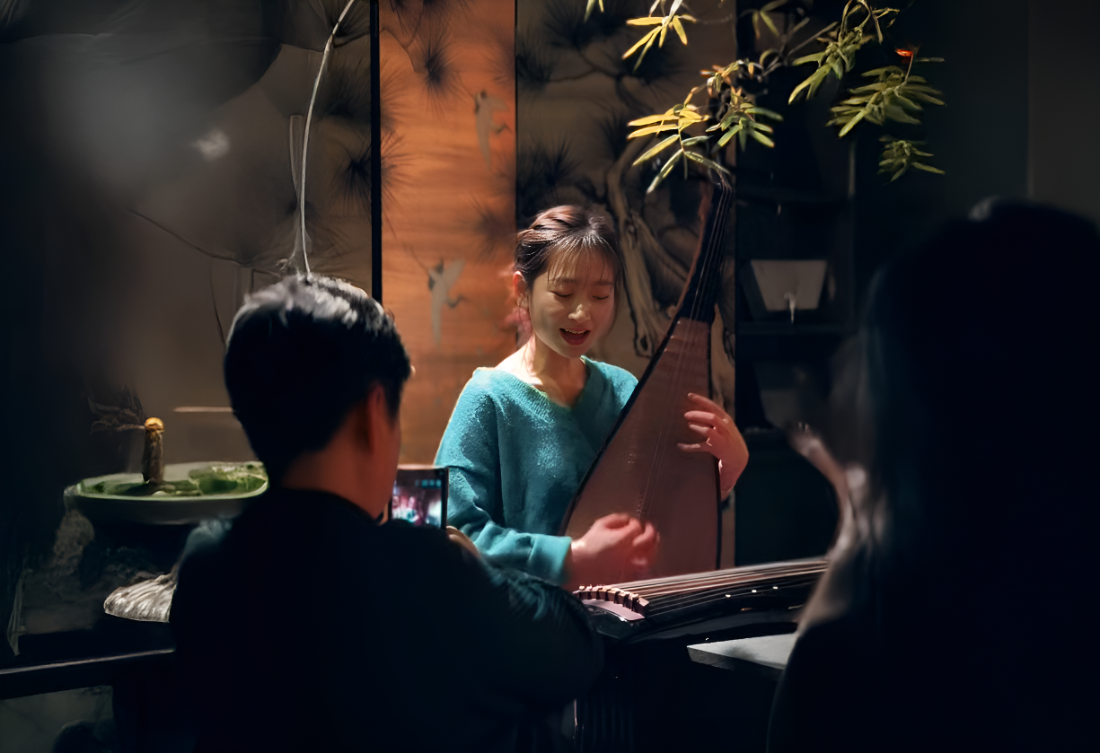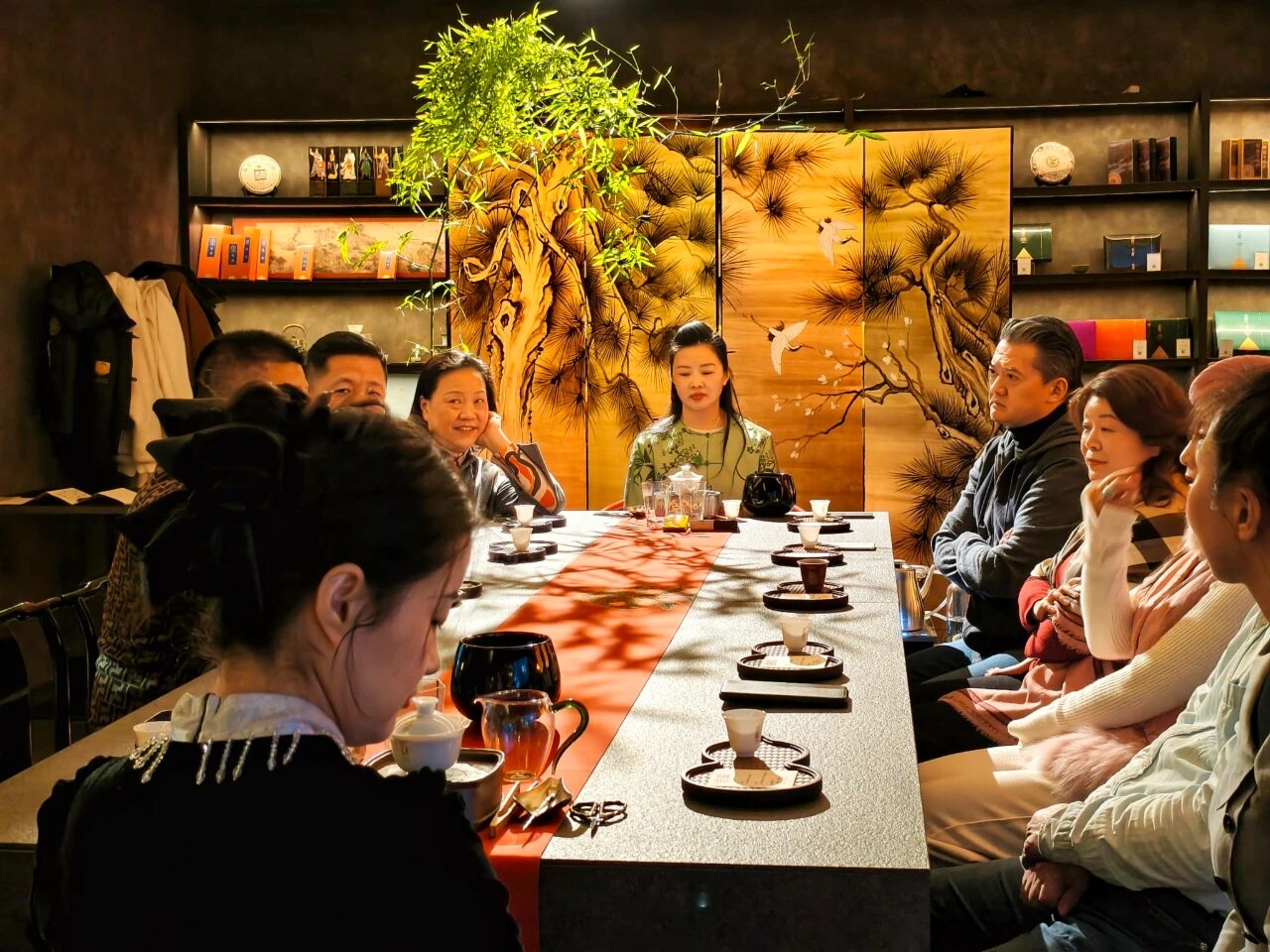 在琵琶的伴奏中,水声、乐声、讲解声交融,茶友们尽情沉醉在茶道与艺术的氛围之中。